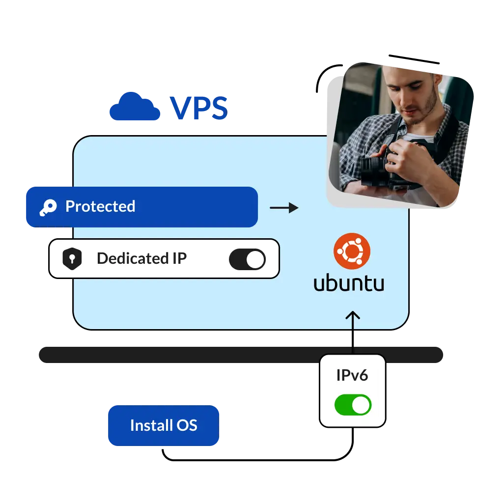 Take full control of your server environment by installing any operating system of your choice. Whether it's Linux, Windows, or a custom ISO, tailor your VPS to match your exact needs.